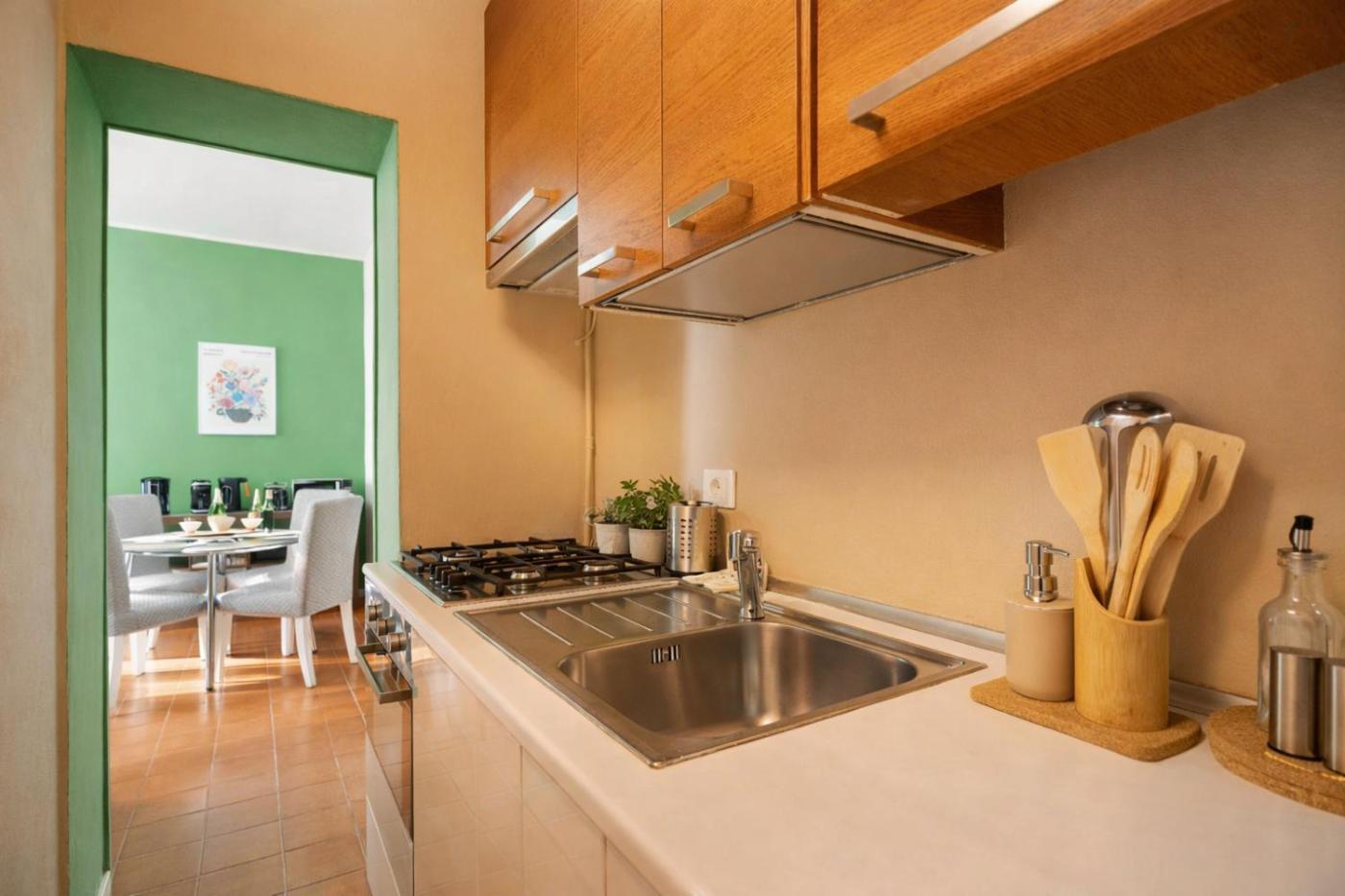 Questo appartamento con aria condizionata comprende 1 camera da letto, un soggiorno, un angolo cottura con utensili, frigorifero e macchina da caffè, e 1 bagno con bidet e doccia. Presso questo appartamento troverete asciugamani e lenzuola tra i servizi disponibili.